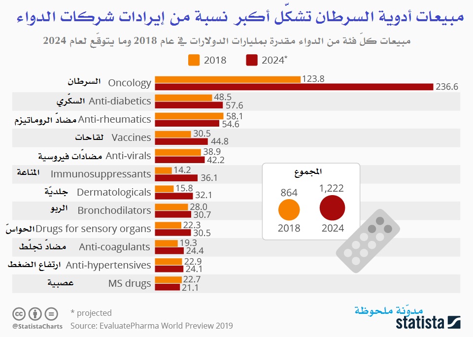 مبيعات أدوية السرطان تشك ل أكبر نسبة من إيرادات شركات الدواء مدونة ملحوظة