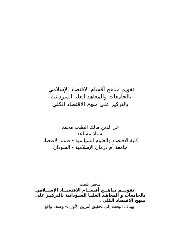 تقويم مناهج أقسام الاقتصاد الاسلامي